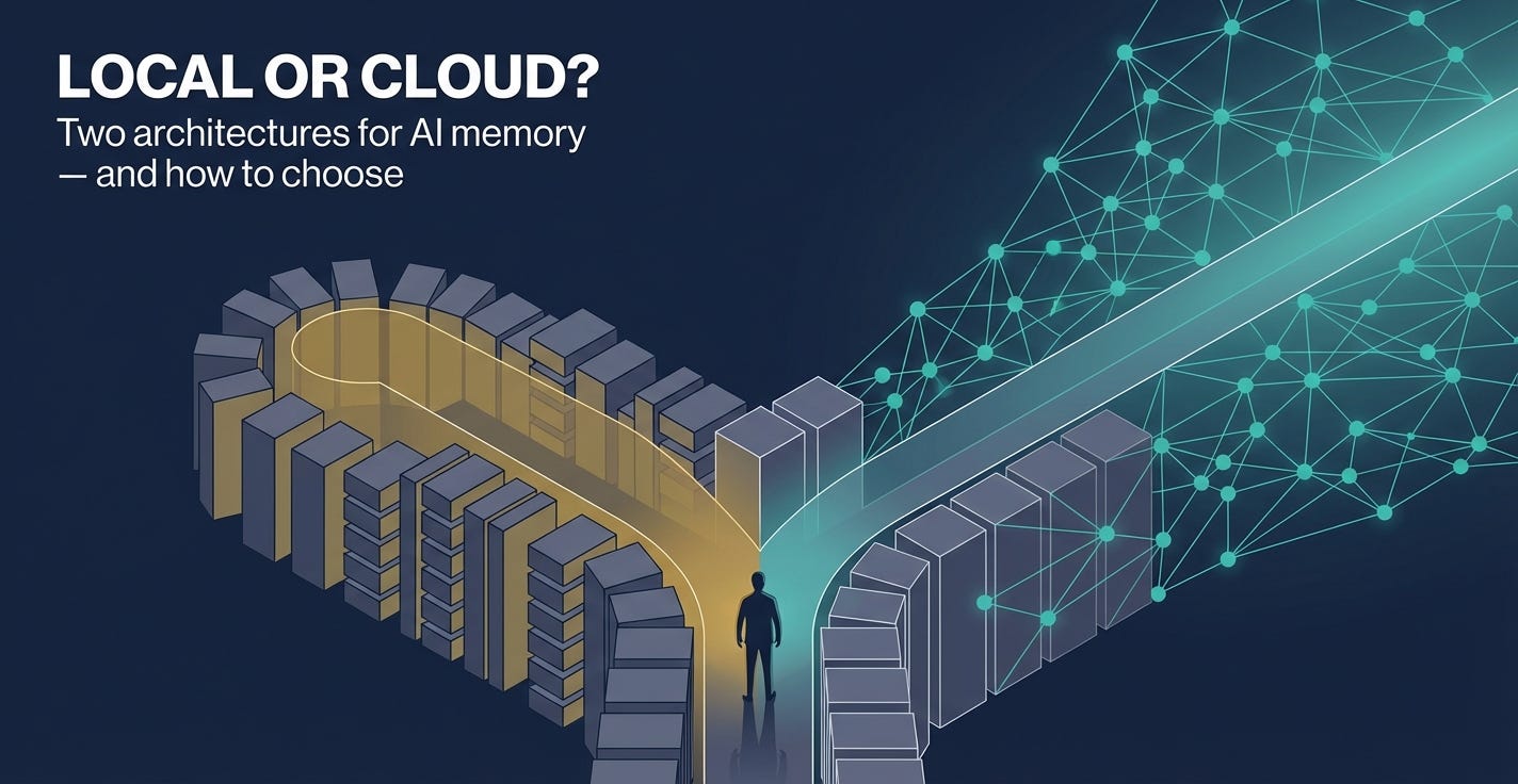 One keeps your data on your machine. The other puts it in the cloud so every AI you use can reach it. The right choice depends on what you’re actually building.